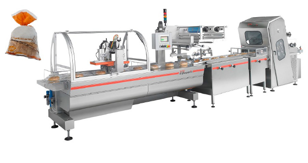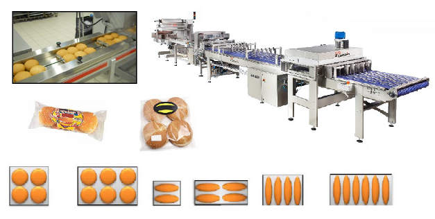 Новая модель разработана для упаковки круглых булочек, помещенных на конвейер автоматическим или полуавтоматическим способом и прошедших нарезку в соответствующей системе.