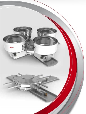 Благодаря своей универсальности в данную систему можно интегрировать погрузочный узел ингредиентов IDROMIX, один или несколько тестомесов и узел разгрузки - дежеопрокидыватель. Система является компактной и состоит из центрального гидравлического ядра, отвечающего за движение деж, что позволяет осуществлять вращение по часовой или против часовой стрелки до 360 градусов.