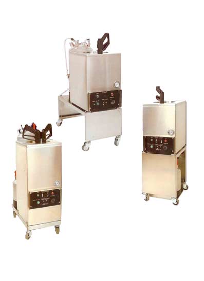 Оснащение: - световой индикатор, сигнализирующий о состоянии готовности к работе - регулятор давления - контрольный манометр давления - световой индикатор в процессе нагревания - выключатель «вкл./выкл.» - регулятор температуры - инжекторный пистолет с сменными форсунками - сменный бак с автоматическим креплением и предохранительным клапаном - термостат с регулируемой температурой 0/120˚С - предохранитель и предохранительный термостат ручной переоснастки (за исключением различных контрольных сигналов).