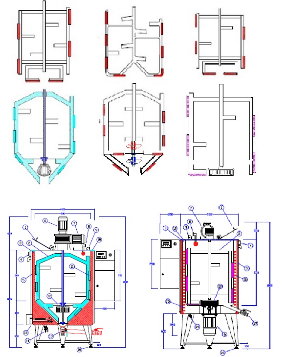 Емкости от 30 до 6000 литров, прочные, гигиенические и практические, с усиленными краями и профилями, исполнены из качественных и аттестованных материалов , с цилиндрическом или коническом дном и разными видами месильными органами.