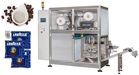 Кофе дозируется в форме диска прямо на нижний слой бумаги. Пневматический поршень плотно прижимает и формирует "таблетку". При помощи аспиратора лишний кофе удаляется. Второй слой бумаги закрывает кофе сверху, горячий поршень плотно сваривает и обрезает круглую подушечку кофе, формируя «таблетку кофе». Механический режим работы. Операторы для обслуживания не требуются.