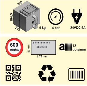 Принтер TB53i печатает тексты различных шрифтов, даты и времени, счетчиков, всех видов кодов, символов и таблиц, включая любые символы или изображения, взятые из интернета и доступные при загрузке на планшет.