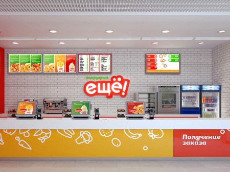 Перемены начинаются с идеи: «Аппетит к жизни» — новое позиционирование, которое изменит оформление и принципы работы сети. Теперь задача-максимум для каждой пиццерии «Ещё!» — менять городской ландшафт в зоне присутствия, создавая островки хорошего настроения. На уровне дизайна позиционирование подкреплено яркими акцентами в фирменном стиле, аксессуарах, интерьере и фасадных решениях.