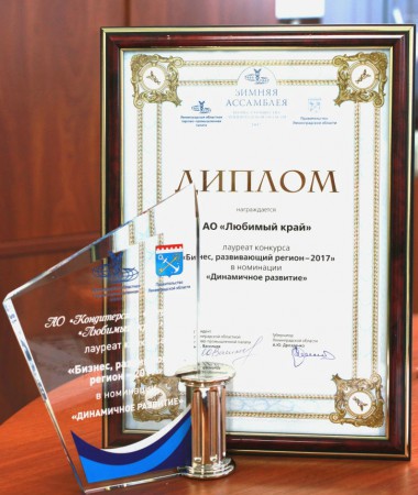 Конкурс проводится на ежегодной основе под патронажем правительства Ленинградской области и Ленинградской областной торгово-промышленной палаты. В нем принимают участие организации Ленинградской области: производители и представители сферы услуг. Всего в 2017 в конкурсе было выделено 8 номинаций: «Разработка и/или внедрение инноваций», «Реализация социальных программ», «Импортозамещение», «Природоохранная деятельность и ресурсосбережение», «Лучший экспортер года», «Успешная инвестиционная деятельность», «Динамичное развитие», «Успешный страт-ап». Зимняя ассамблея Ленинградской торгово-промышленной палаты и Торжественная церемония награждения состоялась 18 декабря 2017 года. Мероприятие прошло в торжественной обстановке, и собрало свыше 500 гостей: топ-менеджеров ведущих предприятий Ленинградской области, представителей Правительства и СМИ. Почетную грамоту лауреата конкурса в номинации «Динамичное развитие» и наградную стеллу вручил Ирине Снеговой, генеральному директору «Любимого Края» лично губернатор Ленинградской области Александр Дрозденко.