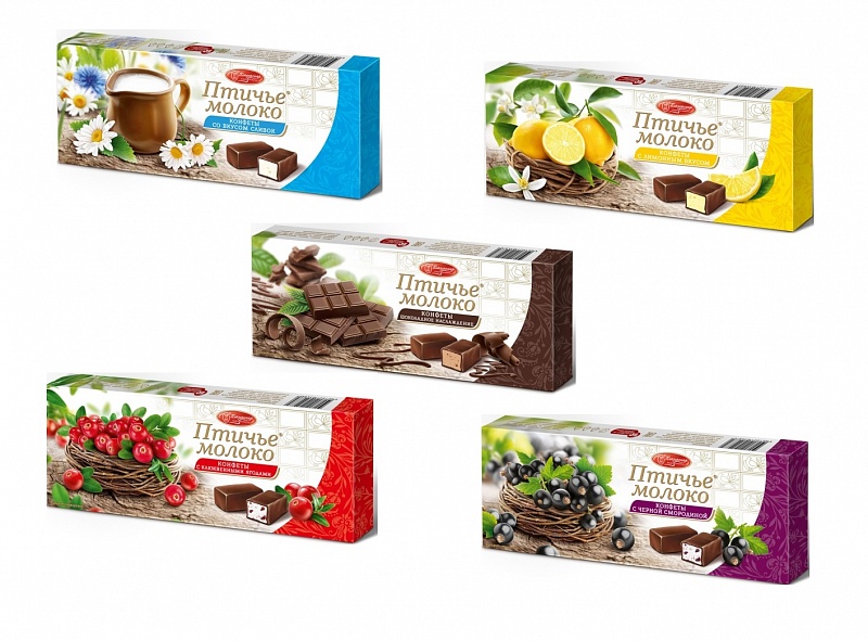 Приятным сюрпризом для любителей «Птичьего молока» стал выпуск знаменитых конфет с новыми вкусами и в новой упаковке. В каждой 200-граммовой коробочке, оформленной в стильном современном дизайне, покупателя ждет набор конфет с одним из пяти вкусов. В ассортименте «Птичье молоко» с классическим вкусом сливок, шоколада, лимона, а также с кусочками клюквы и черной смородины. Нежная сбивная масса в начинке конфет с разными вкусами и ингредиентами отлично сочетается с натуральной шоколадной глазурью, создавая неповторимый вкус воздушного лакомства.