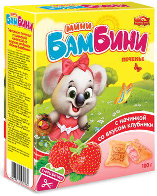 Печенье изготовлено в виде маленьких подушечек с нежными кремовыми начинками. Ассортимент представлен самыми популярными вкусами у детей (молочный, шоколадный и клубничный). Яркий привлекательный дизайн упаковки с забавным героем коалой несомненно привлечет внимание ребенка. А игры, которые вы найдете внутри упаковки, станут интересным развлечением для всей семьи.