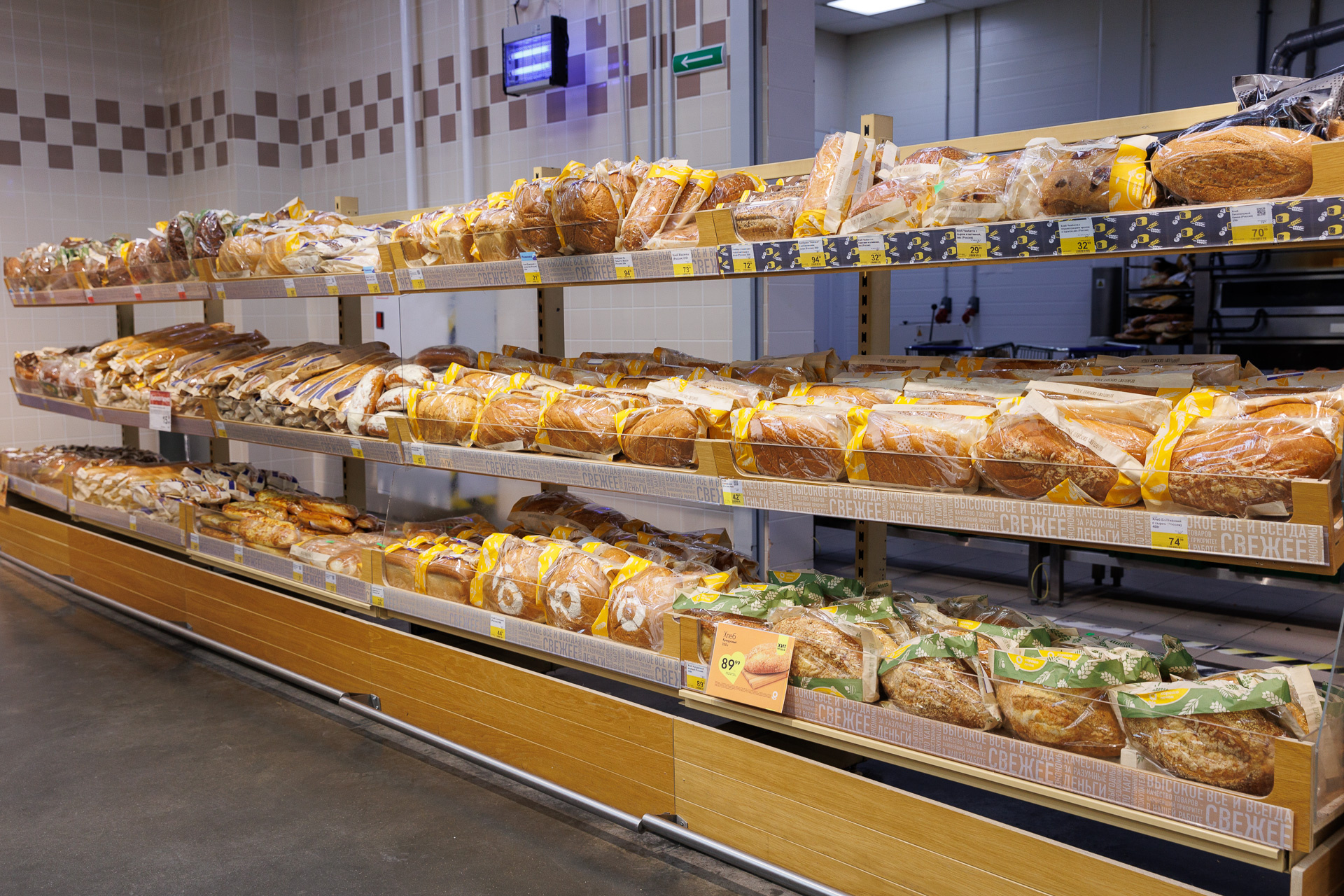 Производственный цех «Гипер Ленты», где ежедневно выпекается свежий хлеб и ароматная сдоба, состоит из двух основных помещений. В первом располагается всё оборудование, которое дает возможность готовить хлеб и печенье в больших количествах. Во втором помещении стоят расстоечные шкафы (где тесто доходит до нужных кондиций) и печки.